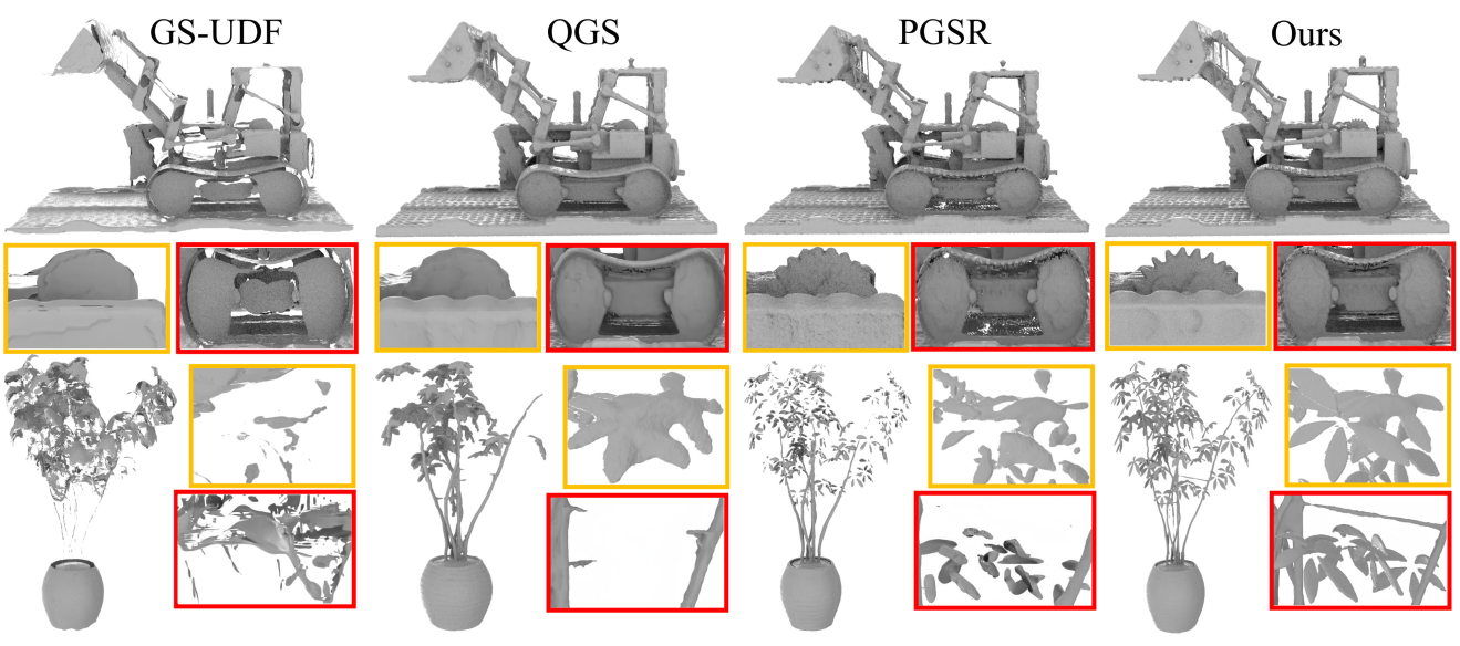 Shujuan Li, Yu-Shen Liu*, Zhizhong Han. GaussianUDF: Inferring Unsigned Distance Functions through 3D Gaussian Splatting. Proceedings of the IEEE/CVF Conference on Computer Vision and Pattern Recognition (CVPR), 2025, pp. 27113-27123. (Highlight, ~2.98% acceptance rate)