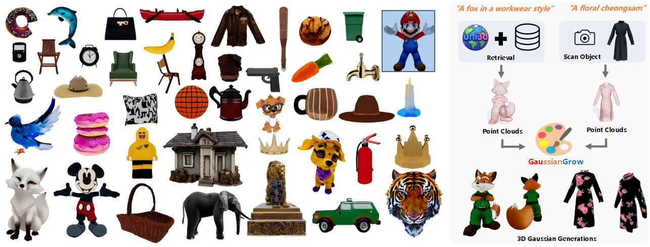 Weiqi Zhang#, Junsheng Zhou#, Haotian Geng, Kanle Shi, Shenkun Xu, Yi Fang, Yu-Shen Liu*. GaussianGrow: Geometry-aware Gaussian Growing from 3D Point Clouds with Text Guidance. Proceedings of the IEEE/CVF Conference on Computer Vision and Pattern Recognition (CVPR), 2026.
