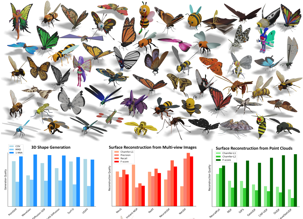 Junsheng Zhou#, Weiqi Zhang#, Baorui Ma, Kanle Shi, Yu-Shen Liu*, Zhizhong Han. UDFStudio: A Unified Framework of Datasets, Benchmarks and Generative Models for Unsigned Distance Functions. IEEE Transactions on Pattern Analysis and Machine Intelligence (TPAMI), 2026, accepted.
